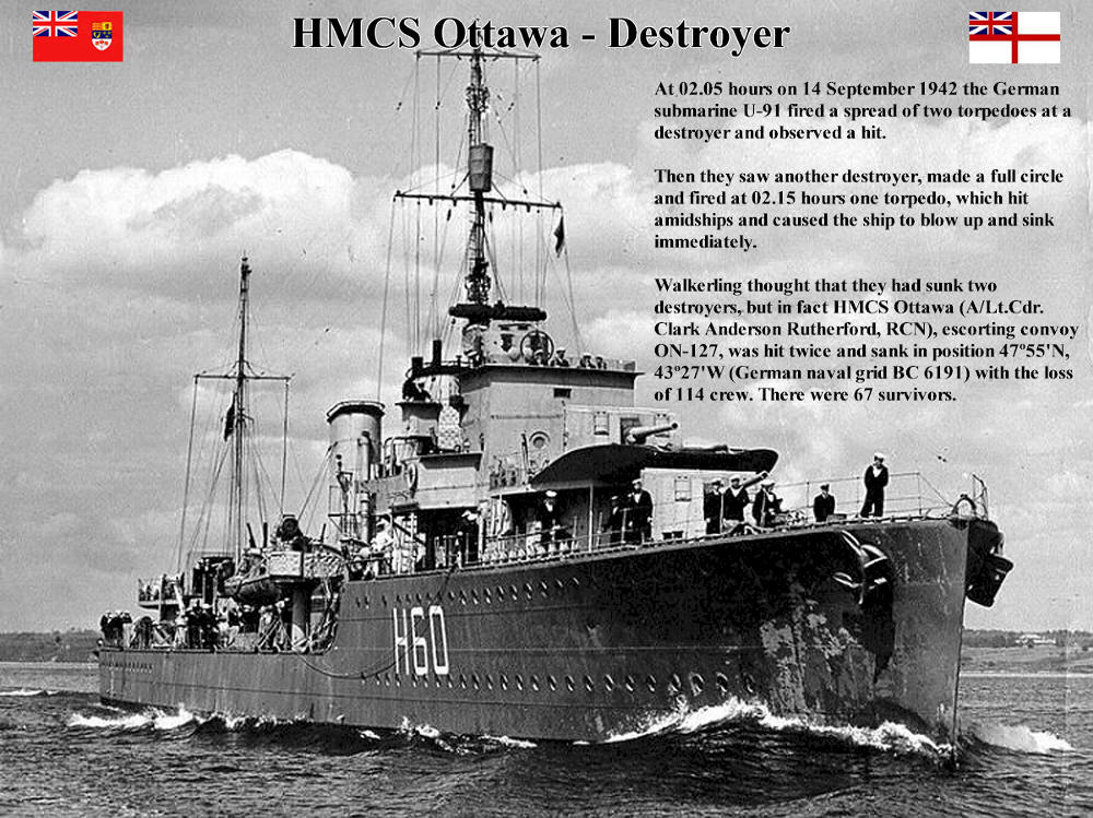 HMCS Athabaskan (Lt.Cdr. John Hamilton Stubbs, DSO, DSC, RCN) was sunk in the